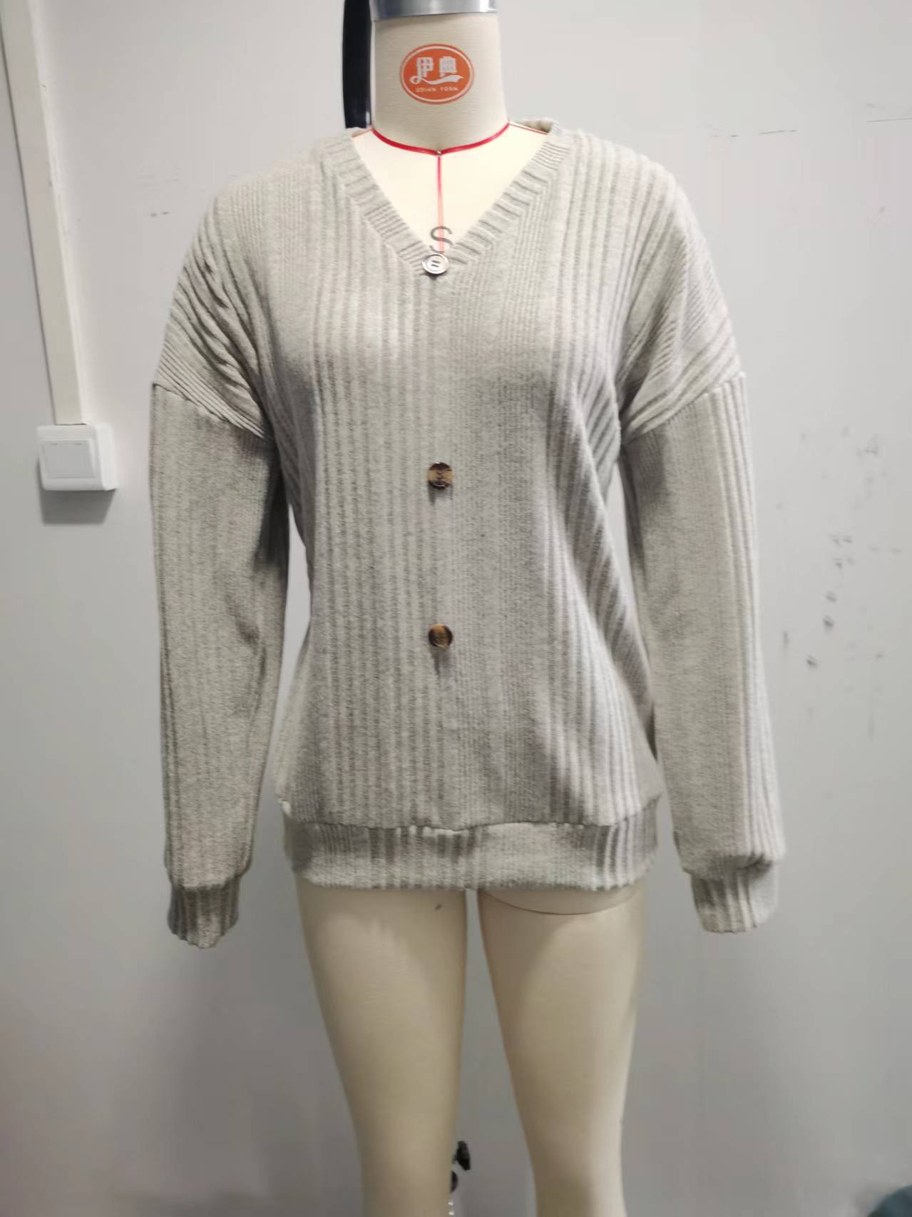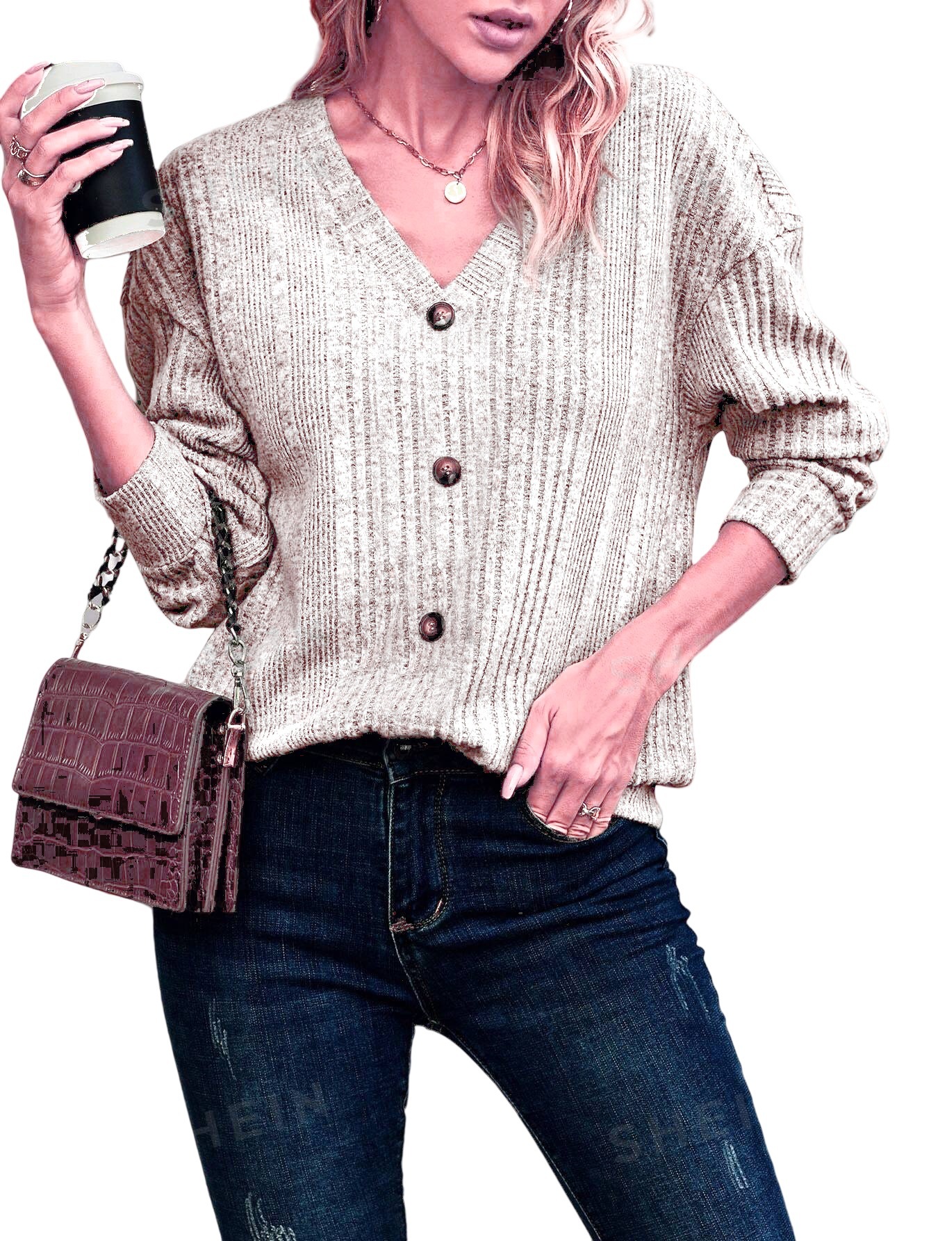 Women's Knitted Button Sweater Casual Long Sleeve Loose Top